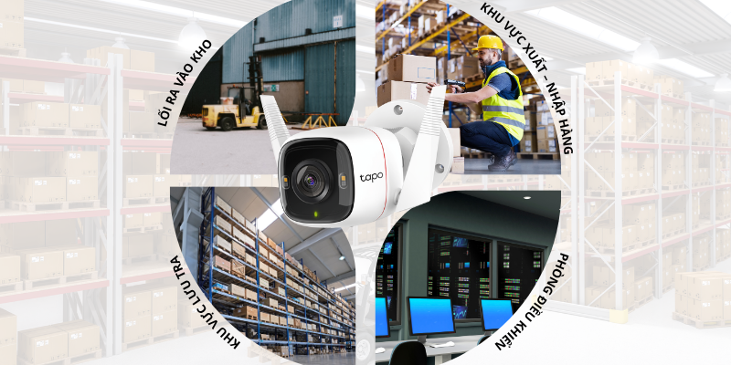 TP-Link nổi bật với dòng camera Tapo, thiết kế nhỏ gọn, dễ lắp đặt, phù hợp cho kho hàng vừa và nhỏ.