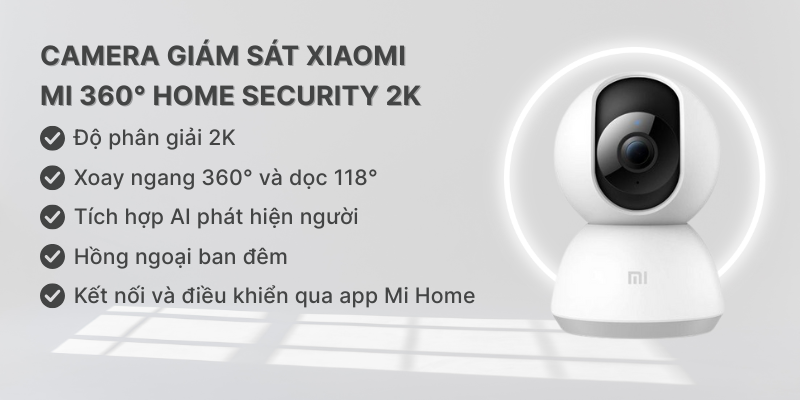 • Góc Nhìn Rộng, Xoay Linh Hoạt: Một số mẫu như Xiaomi Mi 360° Home Security Camera hỗ trợ xoay ngang 360° và dọc 118°, giúp quan sát toàn diện mà không cần lắp nhiều camera.