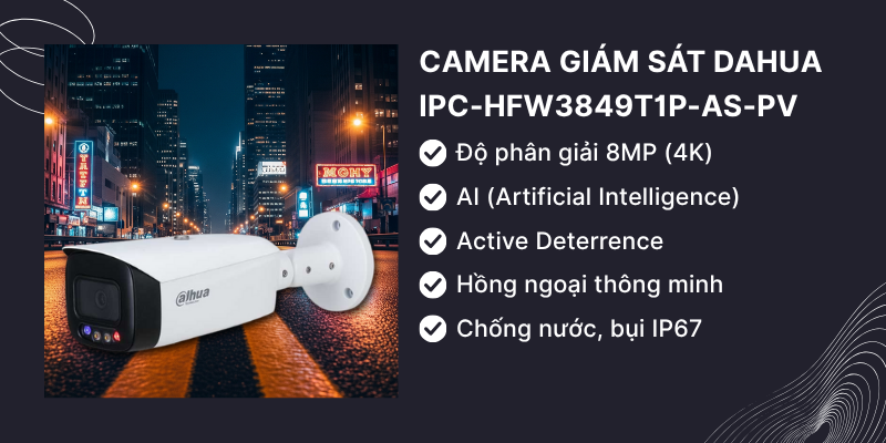 5. Camera IP Dahua IPC-HFW3849T1P-AS-PV (Dạng Thân Trụ, 8MP, AI, Active Deterrence)