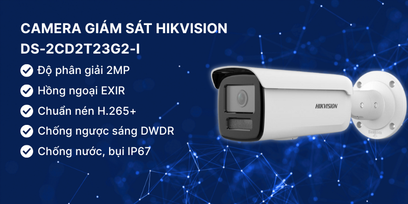 5. Camera IP Hikvision DS-2CD2T23G2-I (Dạng Thân Trụ, Hồng Ngoại EXIR)