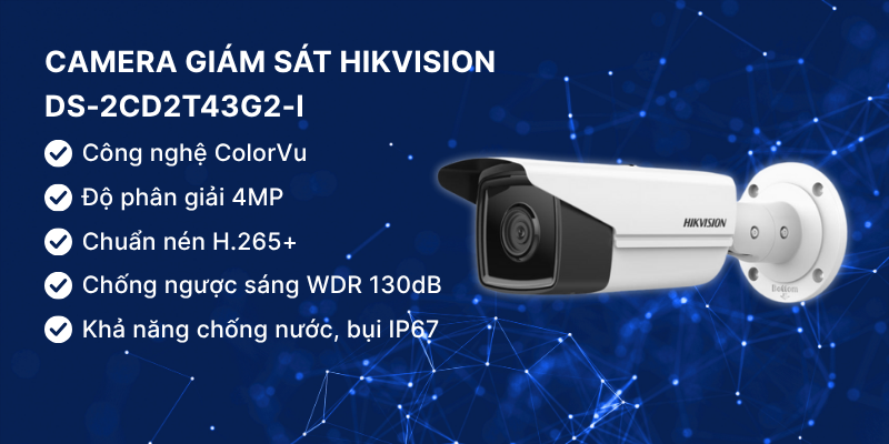 1. Camera IP Hikvision DS-2CD2T43G2-I (Dạng Thân Trụ, Có Màu Ban Đêm - ColorVu)