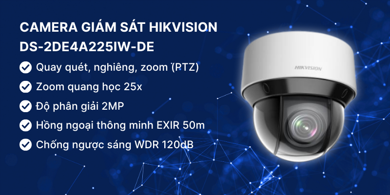 Khi bạn cần giám sát một khu vực rộng lớn và cần khả năng điều khiển linh hoạt, DS-2DE4A225IW-DE là sự lựa chọn không thể bỏ qua. Đây là camera Speed Dome (PTZ) với khả năng quay quét, nghiêng và zoom quang học 25x mạnh mẽ. Với độ phân giải 2MP và hồng ngoại thông minh, camera này cho phép bạn bao quát toàn bộ không gian và phóng to các chi tiết quan trọng.