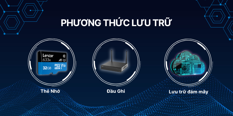 • Thẻ nhớ SD: Phổ biến, chi phí thấp, nhưng dung lượng có hạn và dễ bị mất dữ liệu nếu camera bị lấy đi.