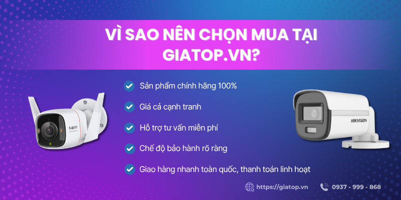 Việc mua camera giám sát không chỉ là đầu tư cho an ninh mà còn là giải pháp thông minh để bảo vệ con người và tài sản. Để đảm bảo chất lượng và dịch vụ tốt nhất, đừng ngần ngại truy cập ngay https://giatop.vn để lựa chọn sản phẩm phù hợp nhu cầu với mức giá tốt nhất thị trường.