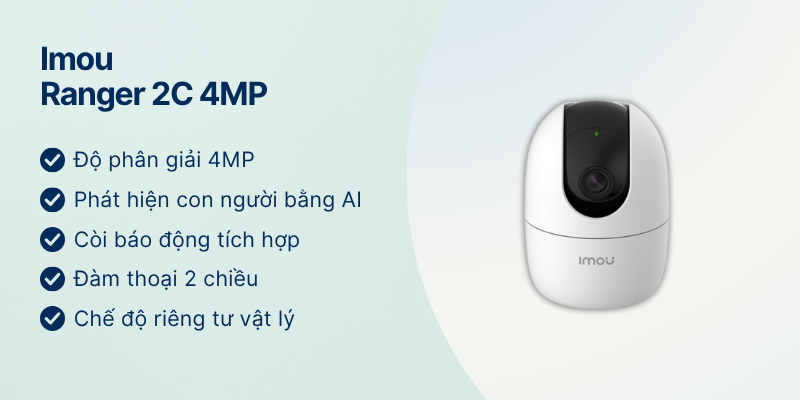 Phù hợp với: Những ai ưu tiên chất lượng hình ảnh cao, muốn có tính năng phát hiện thông minh và cảnh báo hiệu quả. Đây là một trong những camera an ninh trong nhà được yêu thích.