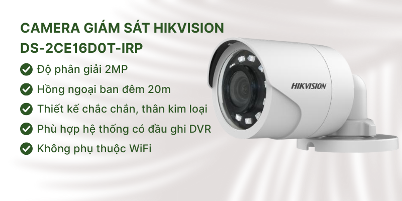 Hikvision DS-2CE16D0T-IRP là dòng camera giám sát có dây, lý tưởng cho khu vườn lớn cần hệ thống giám sát liên tục. Thiết kế thân kim loại bền và độ ổn định cao là điểm cộng lớn.