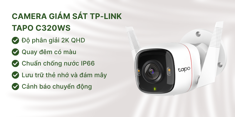 TP-Link Tapo C320WS là dòng camera giám sát ngoài trời cao cấp được trang bị độ phân giải 2K và công nghệ nhìn đêm có màu. Với khả năng chống nước IP66 và tích hợp AI phát hiện chuyển động, đây là lựa chọn lý tưởng để bảo vệ khu vườn suốt ngày đêm.