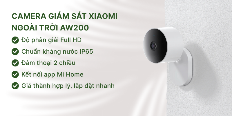 Xiaomi AW200 là chiếc camera ngoài trời nhỏ gọn, hiện đại, tích hợp các tính năng cần thiết như chống nước, quan sát ban đêm, đàm thoại 2 chiều, phù hợp với các khu vườn nhỏ hoặc ban công.
