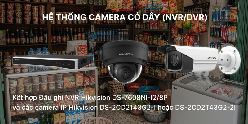 Đối với những cửa hàng có quy mô lớn hơn, có nhiều khu vực cần giám sát hoặc yêu cầu độ ổn định cao tuyệt đối, một hệ thống camera có dây kết hợp đầu ghi hình (NVR cho camera IP hoặc DVR cho camera Analog HD) là lựa chọn tối ưu.