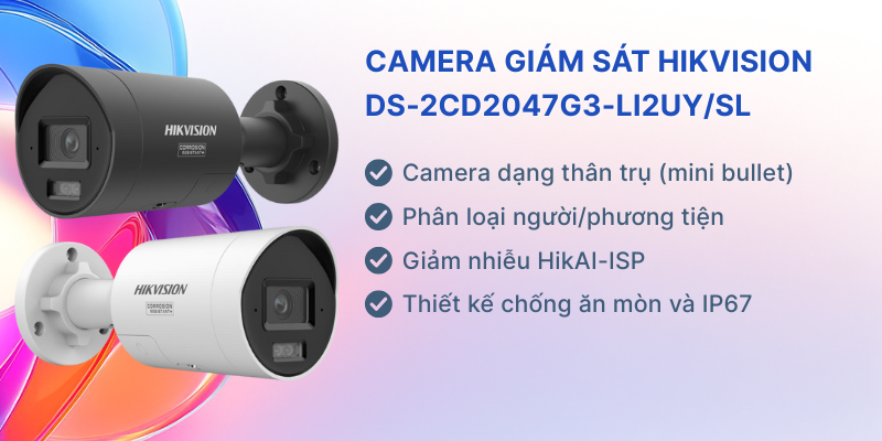 Điểm nổi bật: Camera dạng thân trụ (bullet) mạnh mẽ với ColorVu 24/7 , HikAI-ISP , WDR thích ứng , và phân loại đối tượng thông minh.