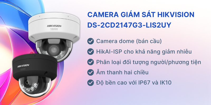 Điểm nổi bật: Đây là các mẫu camera dome (bán cầu) với khả năng ghi hình màu 24/7 nhờ công nghệ ColorVu. Tích hợp HikAI-ISP cho khả năng giảm nhiễu vượt trội , WDR thích ứng theo cảnh, và phân loại đối tượng người/phương tiện chính xác.