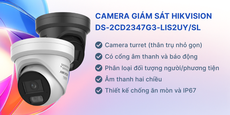 Điểm nổi bật: Các mẫu camera turret (thân trụ nhỏ gọn) này cũng sở hữu công nghệ ColorVu cho hình ảnh màu 24/7 , HikAI-ISP cho giảm nhiễu xuất sắc , và WDR thích ứng cảnh. Khả năng phân loại người và phương tiện cũng được tích hợp.