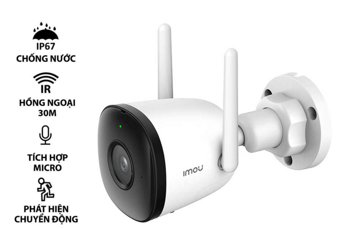 Camera 2MP chuẩn nén H.265 với cảm biến 1/2.7 inch CMOS, ống kính 3.6mm và hồng ngoại tầm xa 30m. Hỗ trợ phát hiện chuyển động, phát hiện con người, kết nối ổn định với 2 ăng ten wifi, thẻ nhớ lên đến 256GB và chuẩn chống nước IP67.