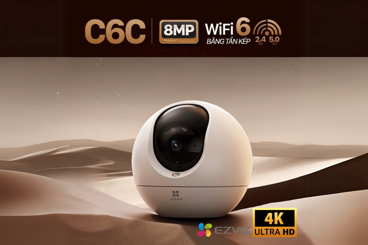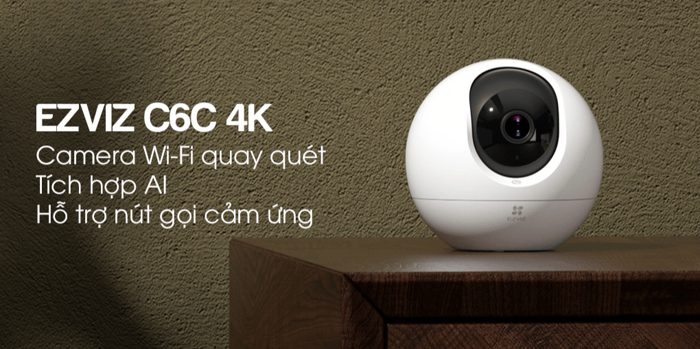 Camera WiFi EZVIZ C6C 4K cho hình ảnh siêu nét 8MP, hỗ trợ đàm thoại hai chiều, tự động theo dõi chuyển động thông minh bằng công nghệ AI.
